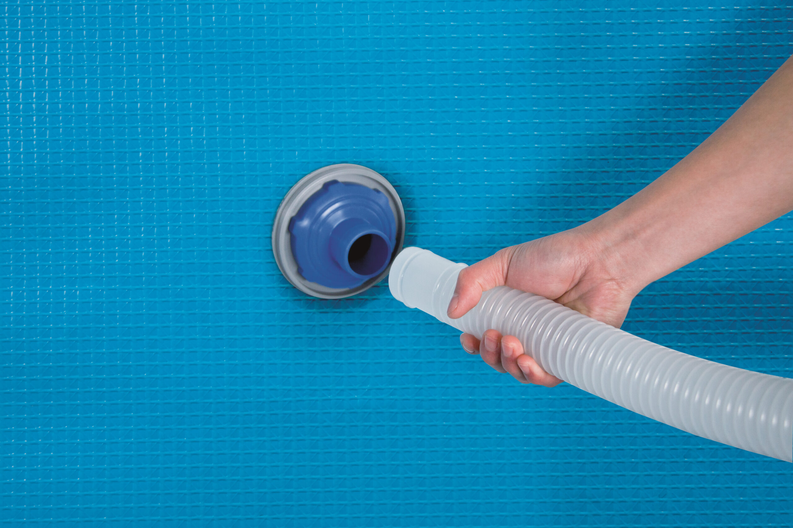 *) يتصل خرطوم التفريغ بفتحة الشفط على جانب حوض السباحة.